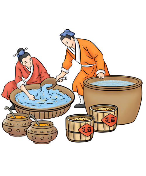 - 芝麻經(jīng)過漂洗浸泡,既清除了芝麻中的并肩泥等雜質,又讓水分充分滲透到完整細胞內(nèi)部,使凝膠體膨脹,再經(jīng)過加熱炒籽,就可以使細胞破裂,油體原生質流出。