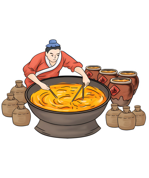 - 漂洗后的芝麻,以鐵鍋碳火慢炒至香味溢出。其中炒芝麻的手法、火候及加料工藝等,都以獨特的秘訣形式由師徒間代代傳承。